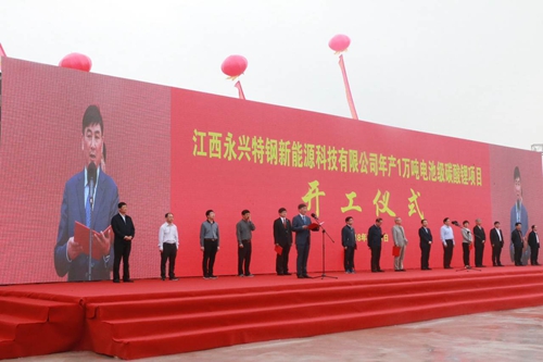 4月21日上午,公司在江西省宜丰县江西永兴特钢新能源科技有限公司项目现场,举行了年产1万吨电池级碳酸锂项目开工仪式。宜春市人大主任张鉴武,市政府副市长张家良,市政协副主席甘本新,宜丰县委书记张俊,县委副书记、县长解鸳,全国人大代表、全国工商联执委,浙江省工商联副主席,天能集团董事长、总裁张天任,永兴特钢董事长、总经理高兴江等出席了本次仪式。
