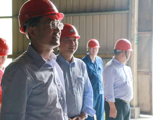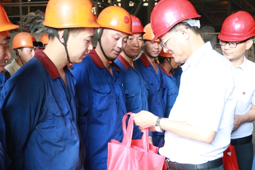 熊书记一行走进生产车间,为公司员工送上防暑降温的物品,并亲切的与我们一线工人交谈,详细了解了他们的工作情况及身体状况。他叮嘱广大员工在高温天气下工作要保重身体,既要完成工作,也要确保身心健康,时刻注意安全工作,再立新功。董事长、总经理高兴江陪同熊书记一行进行慰问并向其介绍了公司为落实防暑降温在加强后勤保障、工作时间调整等方面所做的一系列工作。